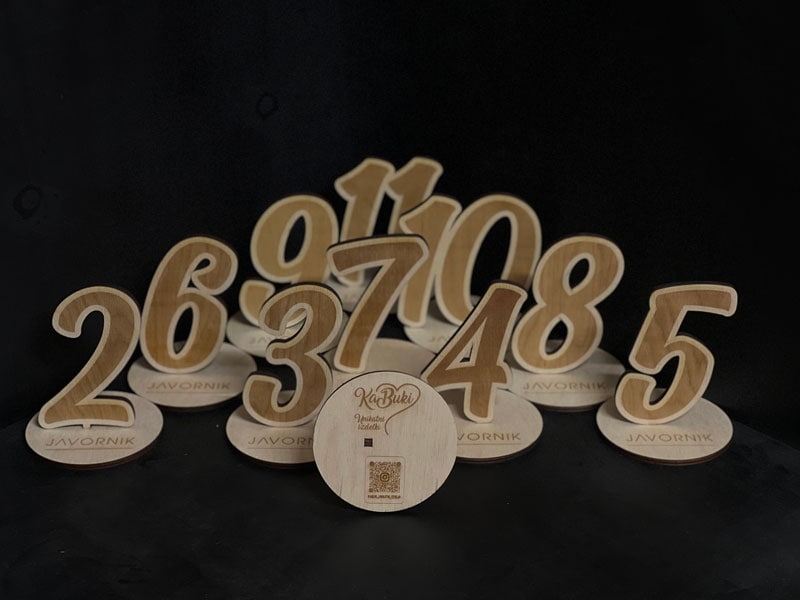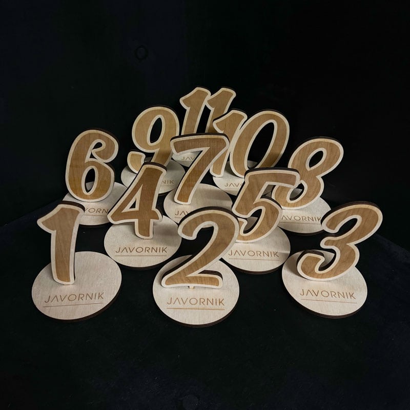 Lesena številka z gravuro in podstavkom