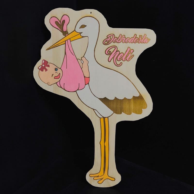 Lesena štorklja ob rojstvu