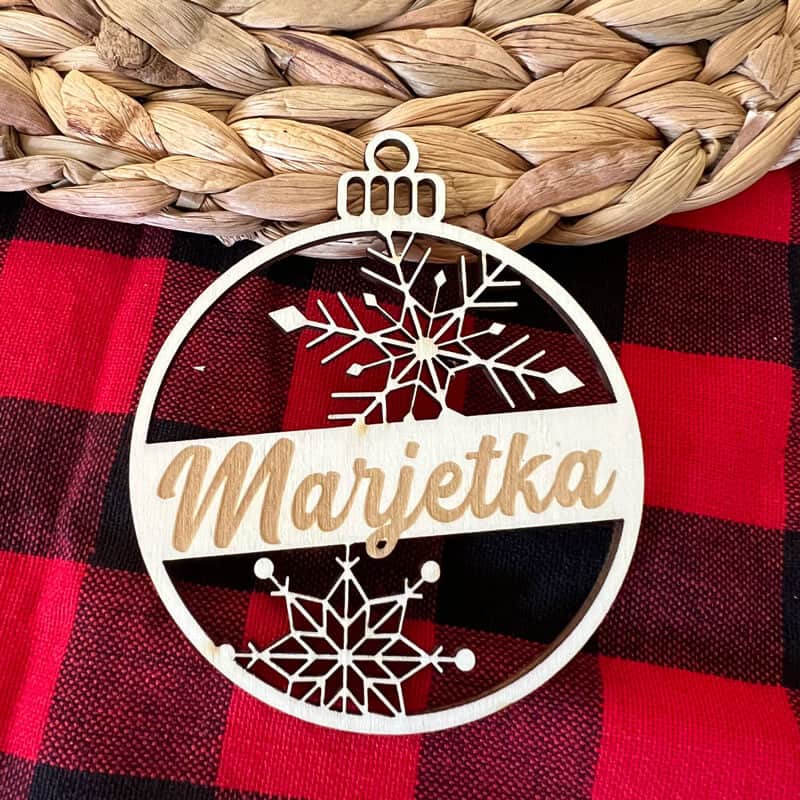 Personaliziran obesek za smrečico z graviranim vašim imenom, z motivom snežink.